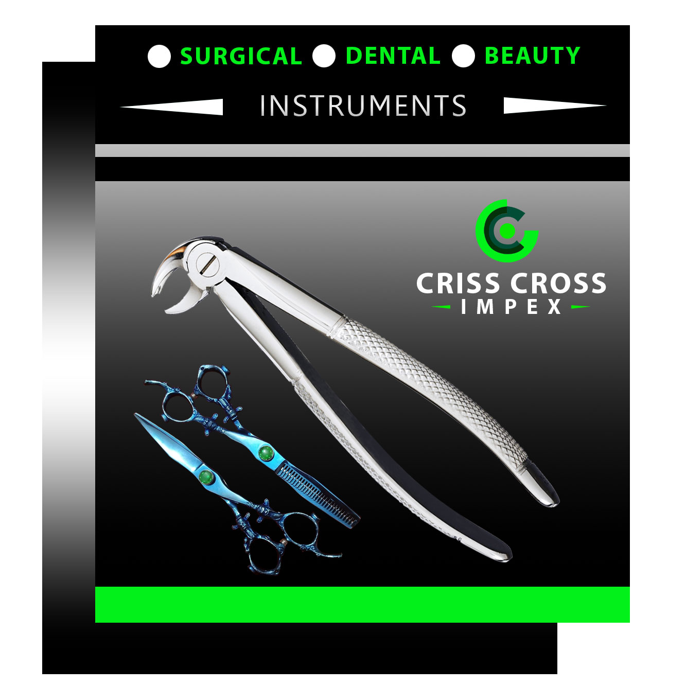 Welcome to Criss Cross Impex ® the pioneers of the surgical manufacturing industry in Sialkot, Pakistan. For your information “Criss Cross Impex ®” is a company that has been working in the field of Surgical Instruments for all types i.e. Surgical, Dental, Manicure / Pedicure, and Instruments in Sialkot, Pakistan for over 18 years. This gives us the experience and “know-how” that can be gained only through time out and we are still considered to be one of the leaders in the field of Surgical Instruments. Our craftsmanship and other staff are permanently working to keep “Criss Cross Impex ®” producing newer, safer, and more modern techniques and methods of surgical instruments. This is what keeps us ahead in this field.